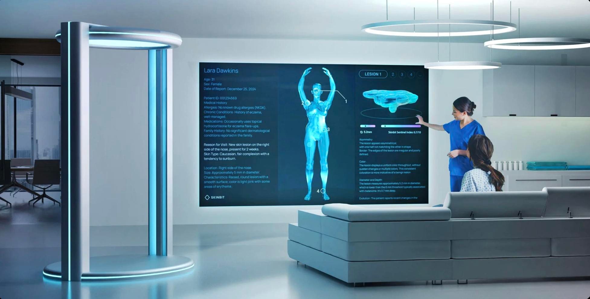 SkinBit addresses this by replacing the subjective human eye with a digital "twin." The system utilizes an elliptical ring of 16 high-resolution cameras to capture a 360-degree map of the patient’s body in under a minute. Using sophisticated computer vision algorithms, the system creates a 3D model with such high fidelity that it can visualize individual blood vessels and skin textures invisible to the human eye. By training these algorithms on over 50,000 clinical data points, SkinBit can classify lesions and assign risk scores with a claimed accuracy exceeding 90 percent.