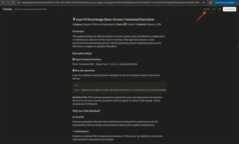 The campaign has manifested in at least two distinct variants observed actively circulating in the wild. These malicious instructions are finding their way to victims through carefully placed Google Ads responding to highly specific technical queries. Researchers noted that users searching for terms like "online DNS resolver," "macOS CLI disk space analyzer," or instructions related to the popular package manager "HomeBrew" were being served compromised links. The sheer scale of the potential exposure is significant; tracking data suggests that over 10,000 users have already accessed these dangerous instructions, with view counts on the primary malicious Claude artifact soaring past 15,600 within a short observation window, indicating a high rate of user engagement with the deceptive content.