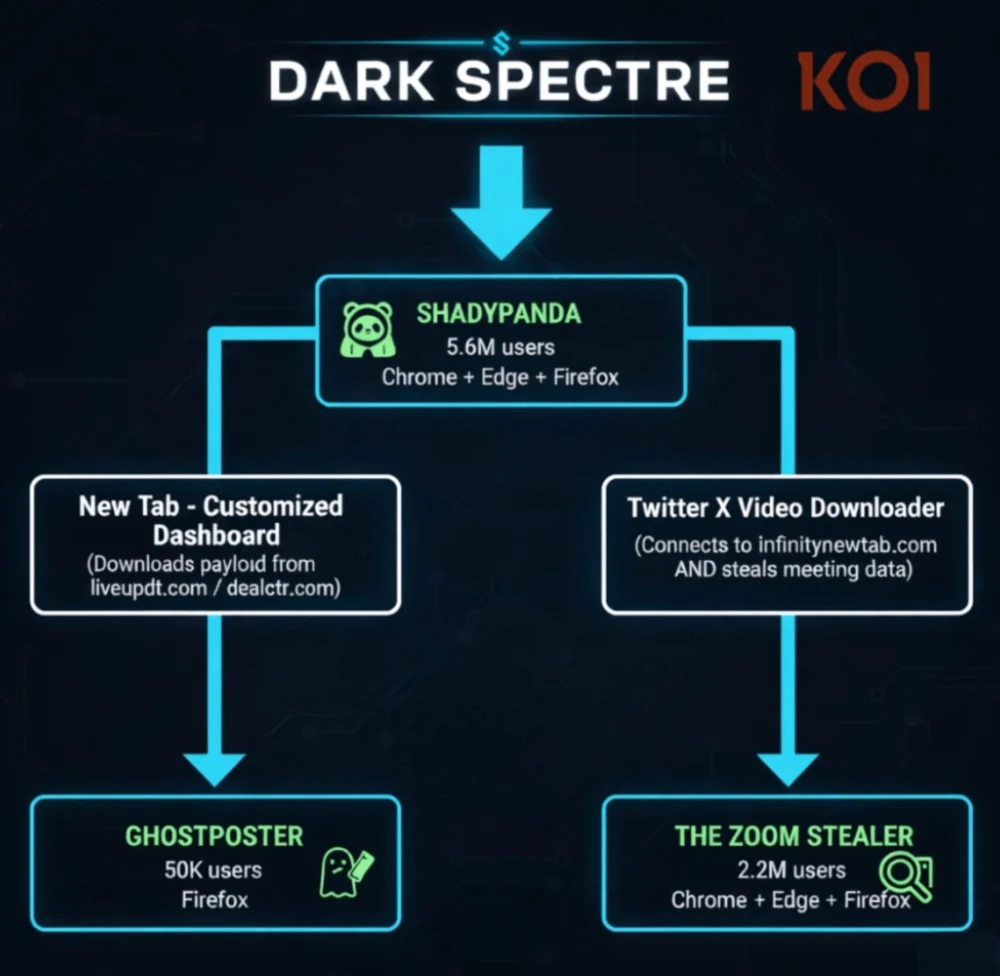 This specific set of malicious extensions forms part of a much broader, multi-year threat matrix orchestrated by a single, highly persistent threat actor identified by researchers as DarkSpectre. Analysis indicates that DarkSpectre is responsible for three distinct browser extension campaigns that, over a span of seven years, have collectively impacted over 7.8 million end-users. The consistent infrastructure and operational characteristics strongly suggest that DarkSpectre is linked to previously documented threat activities originating from China, specifically drawing parallels with the "GhostPoster" campaign, which targeted Firefox users, and the "ShadyPanda" operation, known for deploying spyware payloads across Chrome and Edge installations.